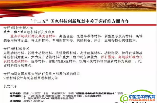 在十三五规划中,鲜明的指出了碳纤维及复合材料发展的重要性,同时在相关行业中,也对轻量化和高性能提出了要求,这正是碳纤维及复合材料的特点。所以十三五是碳纤维行业重要的发展机遇。