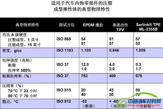 Sarlink ML-2355B TPE-S 还具有很多优于热固性 EPDM 橡胶的优势。首先,它的较低密度可以节约 20% 的重量;另外,它作为热塑性塑料还有废料回收的好处。Teknor Apex 高级汽车市场经理 Ger L. Vroomen 说:“Sarlink ML-2355B 化合物优于 EPDM 的性能改进包括周期时间更短、更易于加工复杂的几何形状、可通过双组件成型与聚丙烯贴合、能够借助机械手辅助脱模,这是 EDPM 无法做到的。Sarlink ML-2355B 化合物还能在更宽的温度范围内保持弹性,并提供更出色的挠曲疲劳行为。”