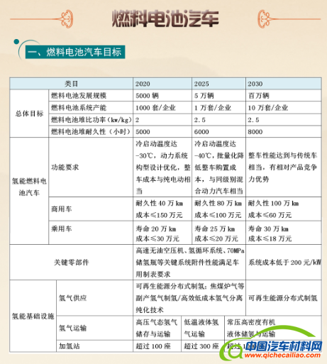 (二)在燃料电池汽车类目中,《路线图》对燃料电池车发展规模、燃料电池对耐久性提出三个阶段的目标。燃料电池汽汽车推广思路,是对燃料电池功率的要求,近期中等功率、中期大功率、远期全功率,而动力电池容量则随着燃料电池的深入发展,由大容量、中等容量直到被替换的技术特征。