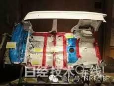 其中,980MPa级钢板用于中柱(外侧)加强材料以及前柱(内侧)、门槛梁(外侧)的加强材料等。780MPa级钢板用于车顶纵梁等。使用590MPa级钢板的是中柱内侧材料及门槛梁外侧材料等(图2中的红色部分),使用440MPa级钢板的是地板、前车架及后车架等。