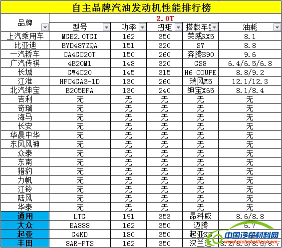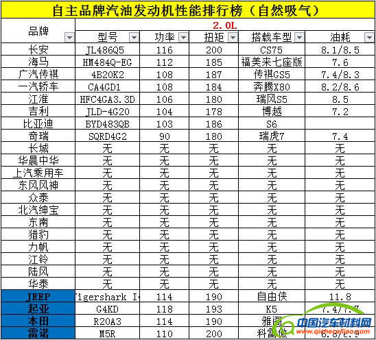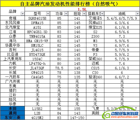 强调:已停产车型的发动机不算,外购的发动机不算,柴油机不算,搭载商务车、卡车之类的不算。油耗因搭载车型不同,对比意义不大。