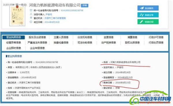 《汽车海外并购》和《智能新能源汽车》查询相关信息后发现,河南力帆新能源电动车有限公司是由重庆力帆乘用车有限公司于2014年8月在河南省济源市高新技术产业开发区投资3000万元成立的,2016年8月23日核准,经营范围包括:新能源四轮电动车、三轮电动车、两轮电动车的生产和销售(含出口);新能源四轮电动车、三轮电动车、两轮电动车的零部件的生产和销售;农机、农具的生产和销售;电动车用大型充电、换电设备的制造、组装和销售;新能源站的设计及项目开发,组织新能源站的项目建设;为电动车提供充电、换电服务;太阳能、风能发电。