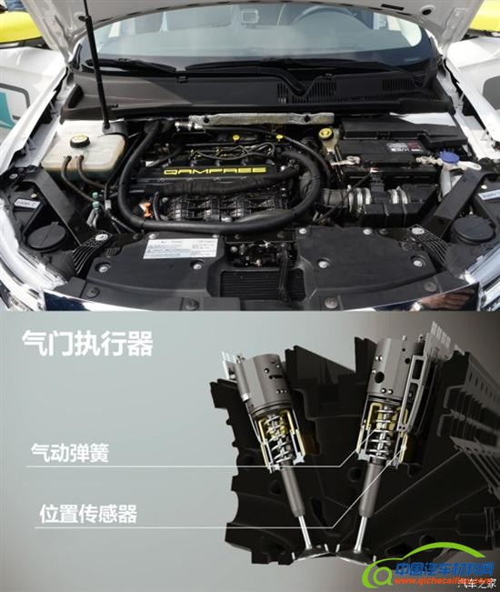 这是一款1.6T四缸汽油发动机,整体的发动机框架是以目前观致1.6T发动机为基础,取消了传统的凸轮轴配气机构,而是换成了以液压和气动系统驱动气门执行器,气门执行器来控制发动机的进排气气门。