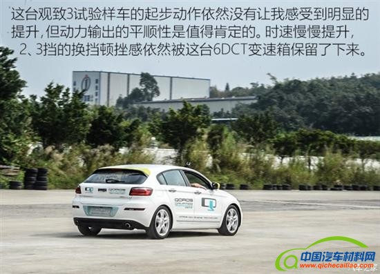 不管是观致3的1.6L版本还是1.6T版本,在此前的试驾过程中,发动机低转速下的动力输出都很普通,轻踩油门车辆的起步过程都不算快。因此,为了解这台试验样车是否为此进行了针对性改善,一开始我没有将油门踏板踩得太深。