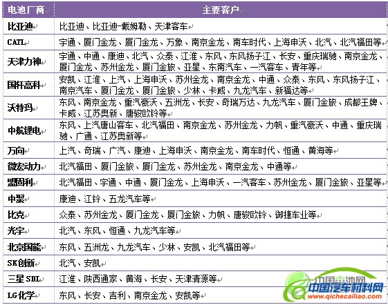 表1:2015年中国新能源汽车市场主要厂商客户关系