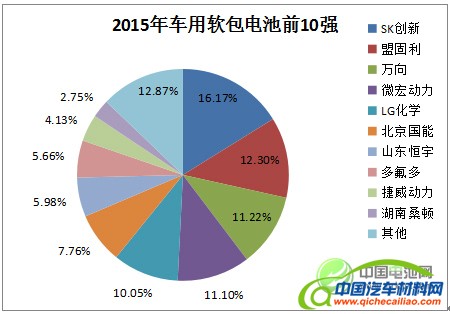 图6. 2015年中国车用软包动力电池市场前10强(注:指电芯企业)(数据来源:真锂研究,2016年8月20日)