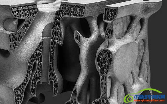 通过选择性激光熔化方案显著提高气缸盖的表面散热面积,减少振动和重量。结果是减少了66%的气缸盖重量,从5095克到1755克,并且体积也从 1887立方厘米减少到650立方厘米。而气缸盖的表面面积从823平方厘米增加到6052平方厘米,主要是通过晶格结构带来的复杂的组织相比,这带来了 更有效的冷却性能,而冷却性能对赛车的性能表现至关重要。