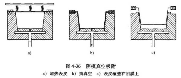 真空阴模吸附成型制件,也是与模腔壁贴合的一面质量较高,结构上也比较鲜明细致,壁厚的最大部位在模腔底部,最薄部位在模腔侧面与底面的交界处,而且随模腔深度的增大制件底部转角处的壁就变得更薄,因此真空阴模成型法不适合于生产深度很大的制件。