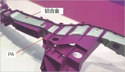 该技术已经在仪表板的支柱——管梁上实现实用化。由铝合金和PA构成,利用共聚PA粘合剂粘合了两种材料。戴姆勒在3款车型上采用。2013年德国戴姆勒在“梅赛德斯·奔驰A级”上首次采用,之后“梅赛德斯·奔驰B级”和“梅赛德斯·奔驰SLS级”也相继配备。使用的PA为玻璃纤维强化PA6。重量最大减轻2成。