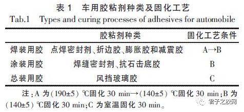 表1 车用胶粘剂种类及固化工艺
