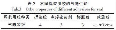 表3 不同焊装用胶的气味性能