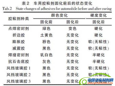 表2 车用胶粘剂固化前后的状态变化