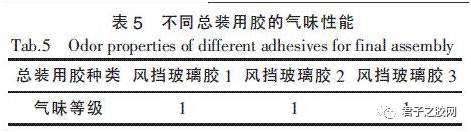 表5 不同总装用胶的气味性能