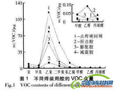 (1)车用胶粘剂种类繁多,在实车装配过程中车用胶粘剂固化后的VOC含量及气味性能对车内空气质量影响很大。