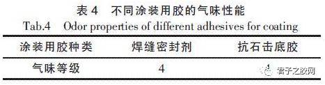 表4 不同涂装用胶的气味性能