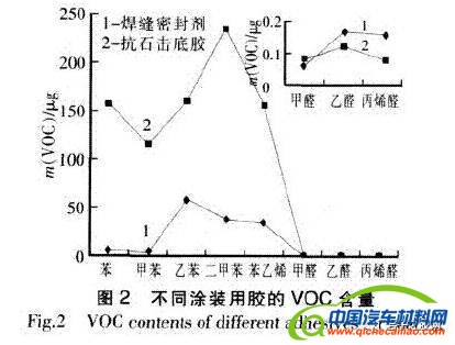 图1 不同焊装用胶的VOC含量