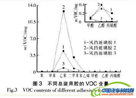 图3 不同总装用胶的VOC含量