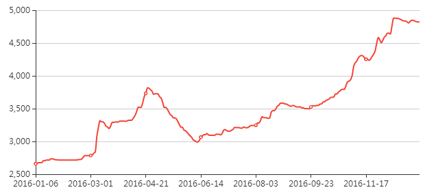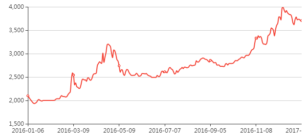 热轧钢年度走势图(2016年1月6日——2017年1月6日)