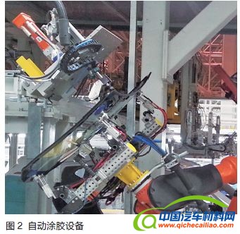 由于生产节拍的要求,机器人自动涂胶工序采用的机器人与底涂的机器人是分开的。设备(见图2)主要包括机器人、对中台、涂胶泵和固定式涂胶枪等。
