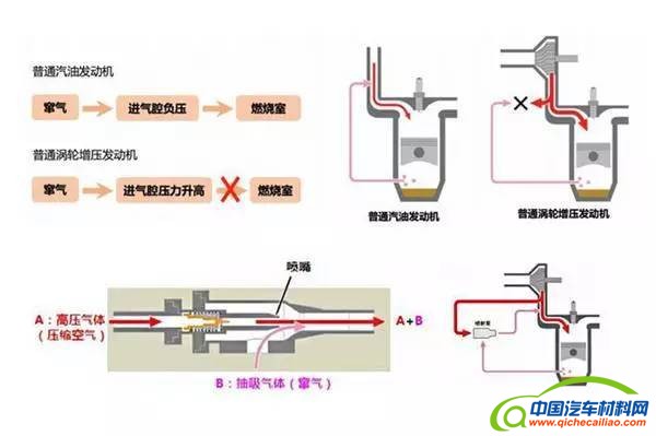 窜气是涡轮增压发动机导致机油过早劣化与机油异常消耗的主要原因之一,由于涡轮增压发动机进气道具有内压,曲轴箱内的机油蒸汽无法顺畅排出,油气分离器分离不够彻底,导致机油进入燃烧室燃烧。丰田的解决方案是在曲轴箱与进气道之间加入了一个油气喷射泵,将机油蒸汽强制打入进气道进行二次燃烧,从而降低了曲轴箱机油蒸汽压力,延缓了机油劣化,更有利于避免烧机油的情况发生。