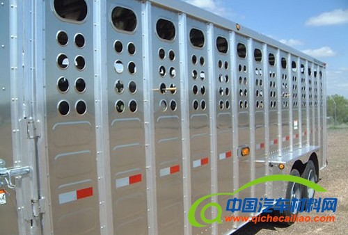 这是一家名叫Merritt公司生产的牲畜挂车,在前轴设有载重传感器,另外还装有可调整角度的支架和其他部件,可根据载重信号调整高度各轴高度以使负荷相等,减少对单个车轴轮胎的磨损,当空载时则可以将部分车桥举升,减少不必要的磨损。