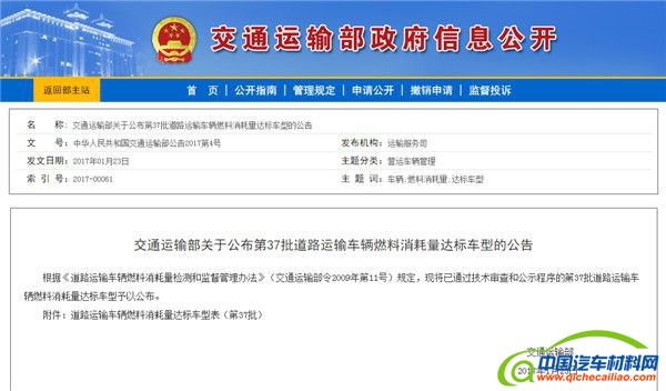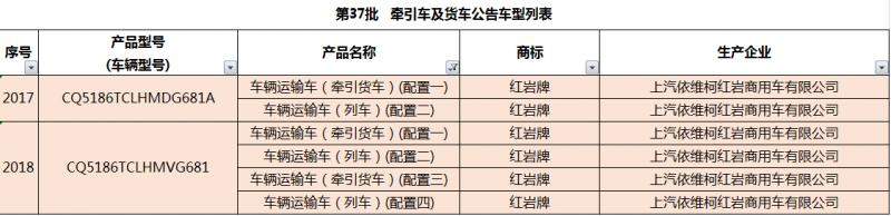 2017年1月23日,中国国家交通运输部政府信息公开了“交通运输部第37批道路运输车辆燃油消耗达标车型”。经过严格评测和技术把控,上汽依维柯红岩商用车有限公司(以下简称“上汽红岩”)生产的“红岩杰狮中置轴轿运车”成为重卡整车制造企业首批通过中国燃油公告的车辆运输车。
