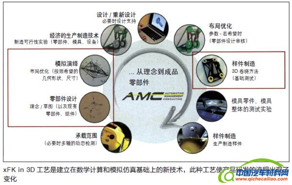 日前,资深工程师PeterFassbaender先生与AMC技术咨询公司的RainerKurek先生决定另辟蹊径,他们开发了具有专利的xFK in 3D工艺。这是一种利用玻璃纤维、碳纤维或玄武岩纤维增强塑料制造三维曲面构件的技术。操作者可根据结构件的承载情况和载荷合成的情况,在X、Y、Z平面内任意地布置上述纤维材料。这样做的优点是:可按照受力方向、应力方向布置纤维,最大限度地较少物料消耗。
