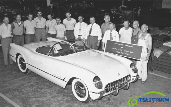 时间来到1953年,通用汽车量产了一款名叫Corvette的超跑,其车身全部使用玻璃纤维复合材料,已达到车身轻量化的目的。这是第一次玻璃纤维复合材料应用在量产车型上,而现在,克尔维特这类超跑都已经开始大量使用碳纤维复合材料来实现车身及其他结构件的轻量化。通过这种轻量化技术,来提升整车的加速性能。下图为克尔维特第一辆车型下线。