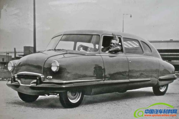 塑料尾门的发展历史,基本上也是一路从最早的热固性塑料,到热固性塑料,热塑性塑料相结合,再到全热塑性塑料这么发展来的。往前推,我们回到1946年的美国底特律,William Bushnell Stout制造出了世界上第一辆覆盖件均为玻璃纤维复合材料的汽车,Stout Scarab,虽然这台车仅此一台能够使用,但是已经足够将这位福特汽车董事,兼职飞机设计师留名汽车塑料化的历史了。另外,这台车也是世界上第一台装配空气悬架的车型。下图中正是William Bushnell Stout驾驶着Stout Scarab. 虽然这辆车拉风异常,很吸引人研究,可是这台车并没有得到量产。Stout驾驶着它在美国各处旅行,最终行程达到250000英里。