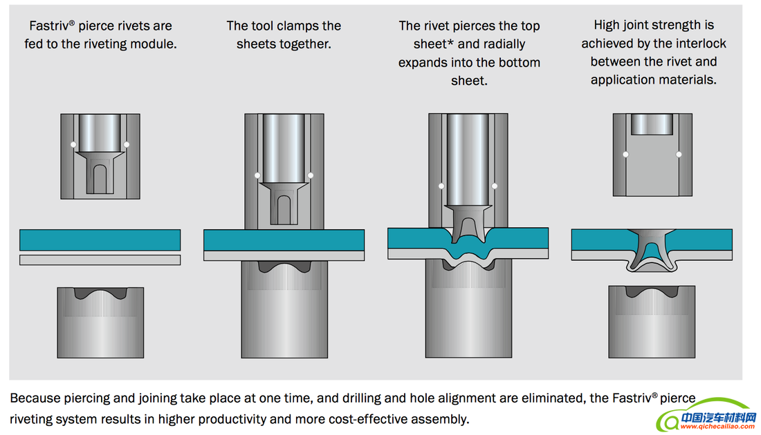 专家指出,自冲铆钉的整个紧固过程不需要加热,这种工艺可以用于连接白车身上的各种相同或不同材料,比如钢-钢和铝-钢连接。