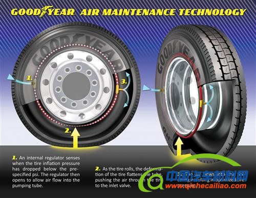 固特异表示,由于大型卡车的胎压很高,应用空气保持技术的难度就特别大。绝大多数商用卡车胎压是105psi,比轿车轮胎32psi的平均值高了几倍。