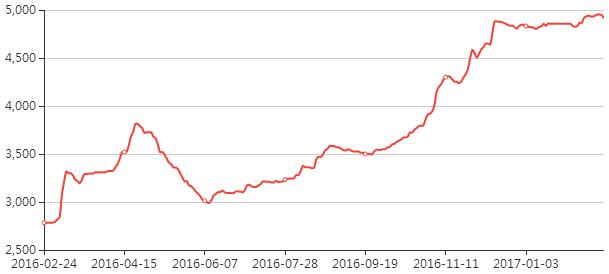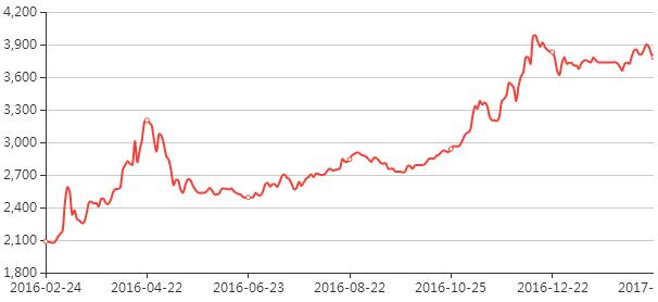 热轧钢年度走势图(2016年2月24日——2017年2月24日)