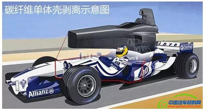 碳纤维单体单体壳与铝制壳体相比,坚固度提升了25%,比钢制壳体相比,除了坚固更显轻质。而且具有较高的耐用性,使用碳纤维壳体的赛车即使发生碰撞,也可以保障车手生命安全,正是因为这样的优异特性,此后的三十多年中,这种材料再也没有离开过F1赛场。