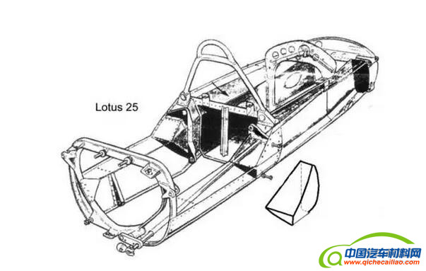 首先,什么是单体碳纤维壳?单体壳的概念源于赛车场,最早的单体壳式机构的赛车是由路易·布莱里奥设计并在1923年法国GP赛场上初次实践。而与F1赛场擦出火花则是在1962年,技师首次用铆钉加固的轻金属壳体替代了传统管状框架座舱,从此一鸣惊人,次年吉米-克拉克就驾驶着采用了单体壳设计的莲花25车型获得了七个分站赛胜利并最终获得了年度总冠军。