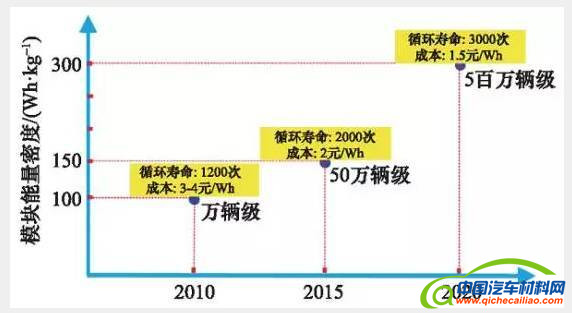 图5 中国节能与新能源汽车规划设置的动力电池模块相关参数指标