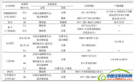 表2 国际主流电池公司量产的动力电池产品相关信息