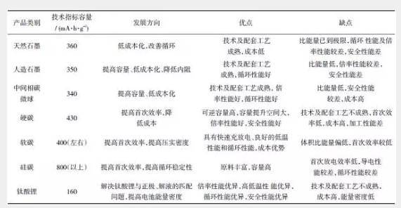 表5 负极材料综合性能对比