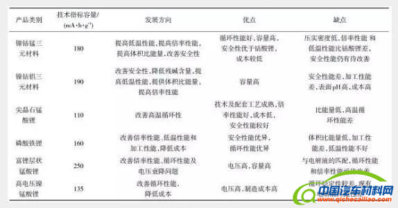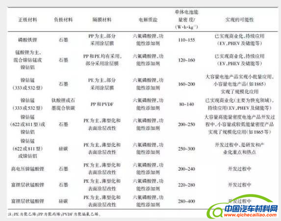 动力电池2020年预期实现产业化的材料体系及单体电池技术指标如表6所示。