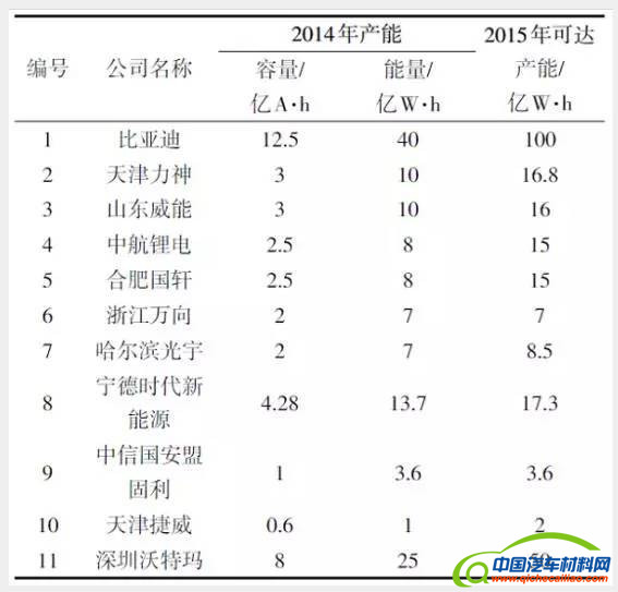 表3 中国主流动力电池公司产能统计