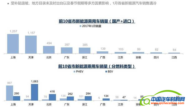 17年的1月的交强险汽车销量数据体现北京的新能源车达到494台,其中基本是纯电车型,插混占到1%,由此也决定了全国新能源车市场的发展模式是纯电为主的特征,地方特色决定市场模式。而上海的上牌是1257台,其中7成是插混,纯电动的需求较弱,形成上海模式。由于上海的新能源车数量在17年1月高于北京,1月也是全国市场的暂时成交休眠期。
