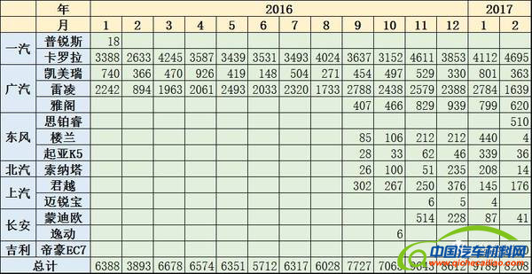 16年丰田混动的总体销量在月均6300台水平,3-6月出现逐步稳定的趋势。16年的卡罗拉混动表现较强,市场认可度很高,部分城市的购买仍需排队。17年的的普混仍是南北丰田为主,但雅阁等混动车型已经表现出稳定的需求,雅阁与凯美瑞的销量近似。2月的思铂睿混动也是表现较强。