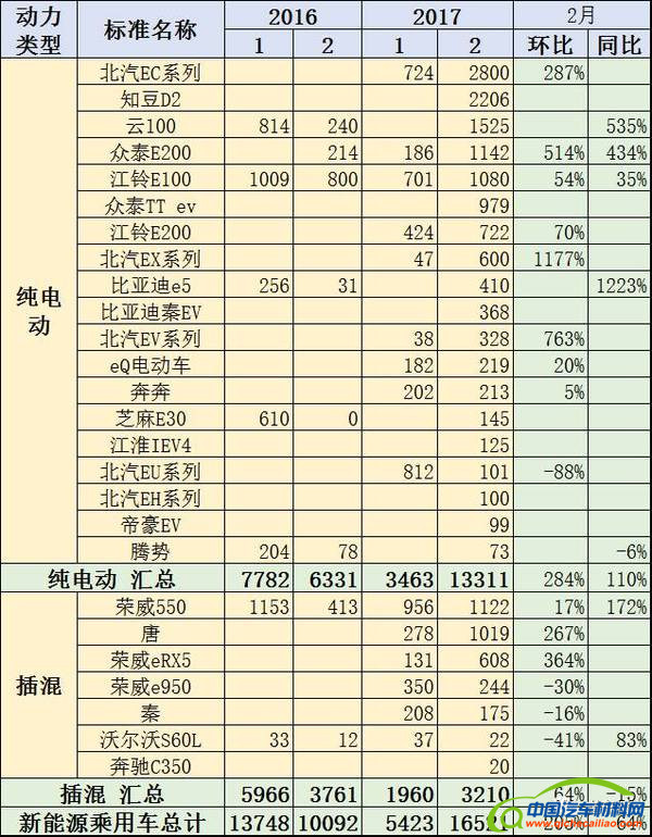 16年插电混动的车型组合多元化,SUV等表现较强,随着网约车的治理新政,16年4季度的插混总体低迷,17年初也是没有改善。