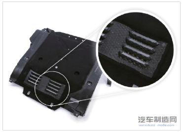 这种车身底部保护由GMT和局部纤维增强(可以使用有机板)制成。除了撞击岩石后可以恢复到原有的形状外,塑料材质具有防腐蚀性,并且(由于其重量较轻)易于安装在生产线上。当然,小石头撞击时产生的声音也要比金属材质低很多。而且集成部件可能可以节省成本。