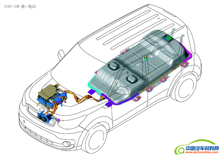 电池包总重量为203kg,体积约217L,能量密度为160 Wh/kg,能量体积比约为150Wh/L。