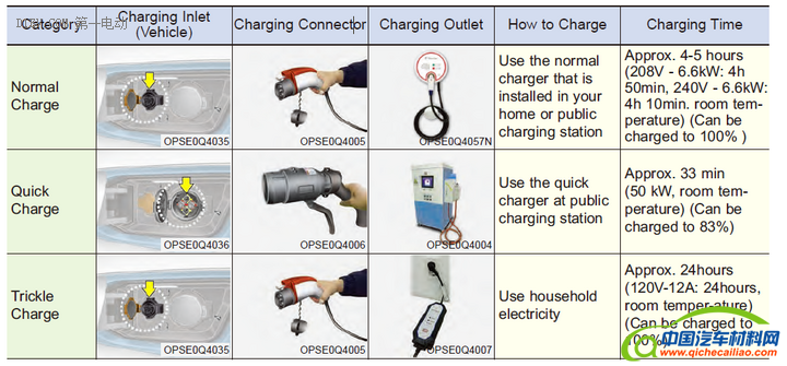 KIA Soul EV 共有3种充电方式,正常充电大约需要4~5个小时,使用充电桩进行,可充至100%SOC;慢充,约24小时,可充至100%SOC。