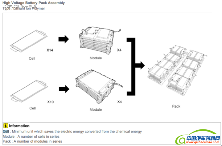 成组:整个电池包共由192个电芯,2并96串构成。电池包中的模组分为两种,一种是由10个电芯组成,电压为,另一种是14个电芯组成。其配置方案如下图所示。