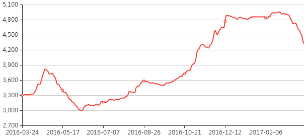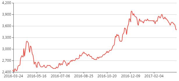 热轧钢年度走势图(2016年3月10日——2017年3月24日)