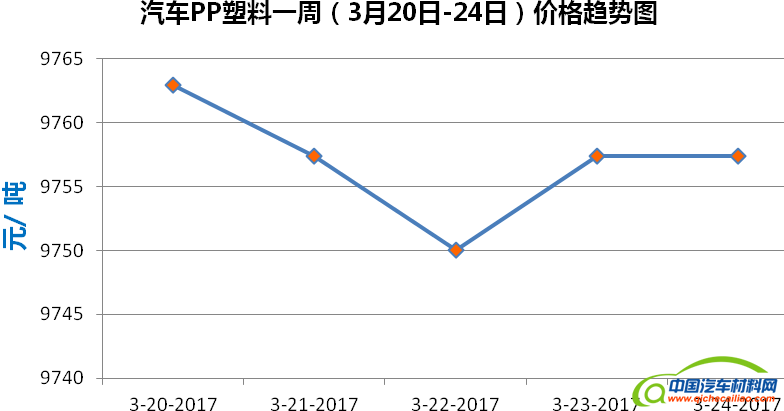 PP塑料本周内价格变化如下:3月20日-22日,价格下跌,跌幅为12.96元/吨。3月22日-24日,价格有小幅上涨,本周五价格为9757.41元/吨。PP塑料本周均价为9757.04元/吨,较上周下跌0.09%,较2月份均价下跌2.69%。