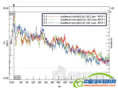 通过上述三种工况的试验,我们可以找到一种研究车内噪声的正确、可靠、便利的试验手段和分析方法,便于正确分析车内噪声的来源和传递路径。