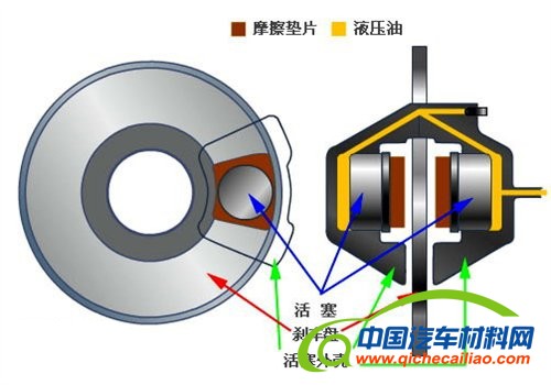 ● 盘式刹车的作用方式: